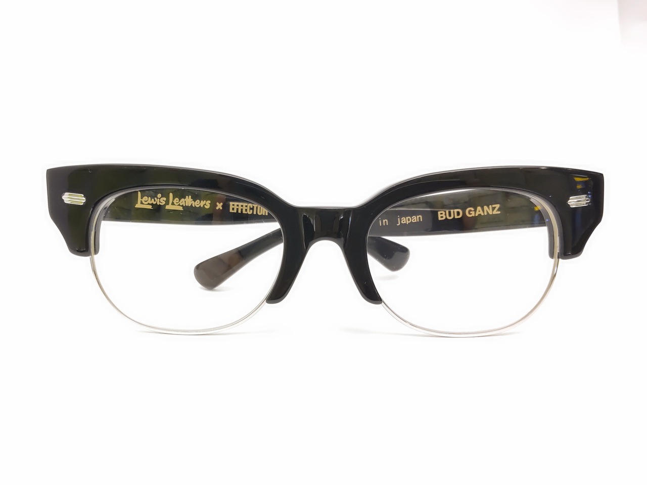 イギリスのライダースジャケットブランドの[Lewis Leathers]とのコラボレーションモデルです。EFFECTORの定番モデルのfuzzをベースにしただけあって、無骨なセルブロウタイプのメガネです。